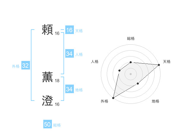 頼 薫澄さんを姓名の画数から五運を鑑定