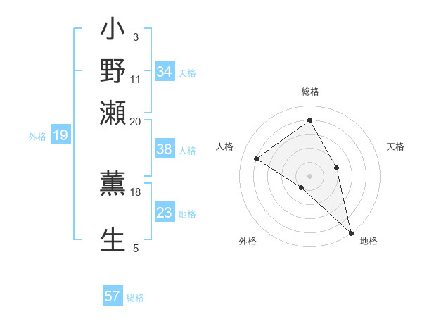 小野瀬 薫生さんを姓名の画数から五運を鑑定
