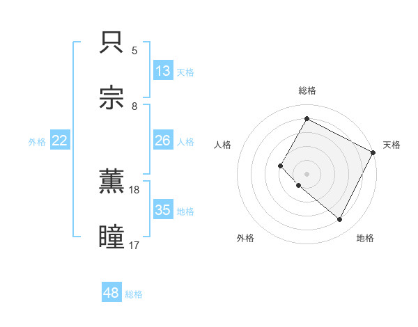 只宗 薫瞳さんの天格は13画の5点!