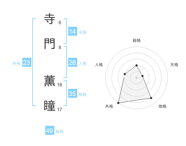 寺門 薫瞳さんを姓名の画数から五運を鑑定