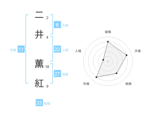二井 薫紅さんの総格は33画の4点!