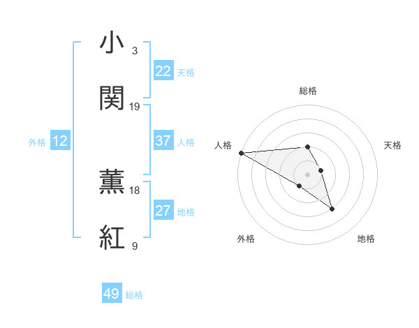 小関 薫紅さんを姓名の画数から五運を鑑定