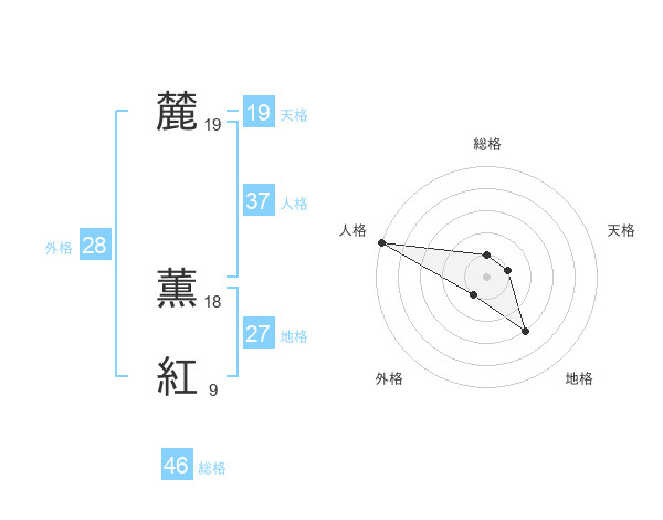 麓 薫紅さんを姓名の画数から五運を鑑定