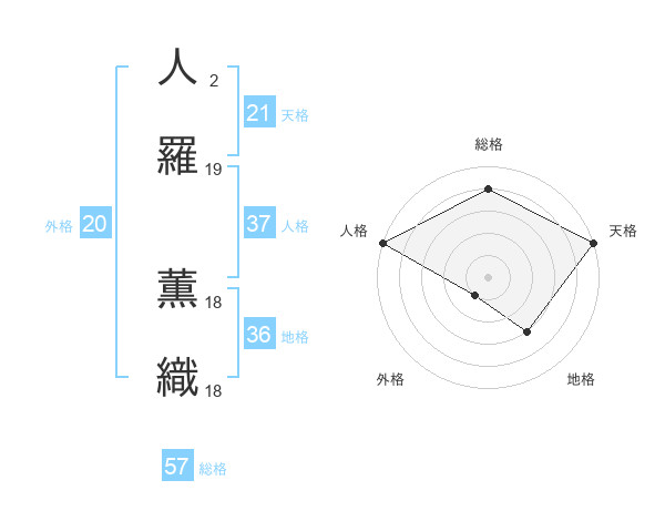 人羅 薫織さんの総格は57画の4点!