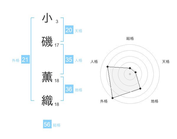 小磯 薫織さんを姓名の画数から五運を鑑定