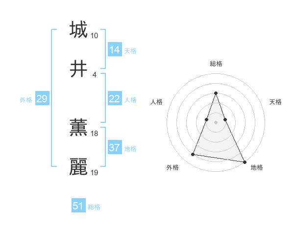 城井 薫麗さんの総格は51画の3点!