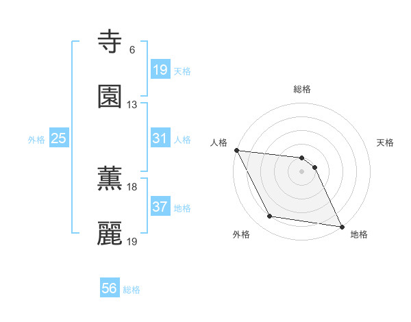 寺園 薫麗さんの総格は56画の1点!