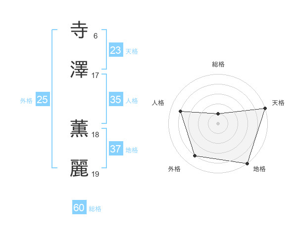 寺澤 薫麗さんを姓名の画数から五運を鑑定