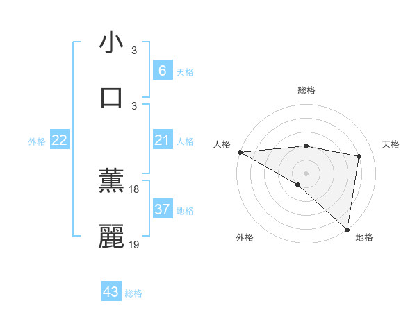 小口 薫麗さんの総格は43画の2点!