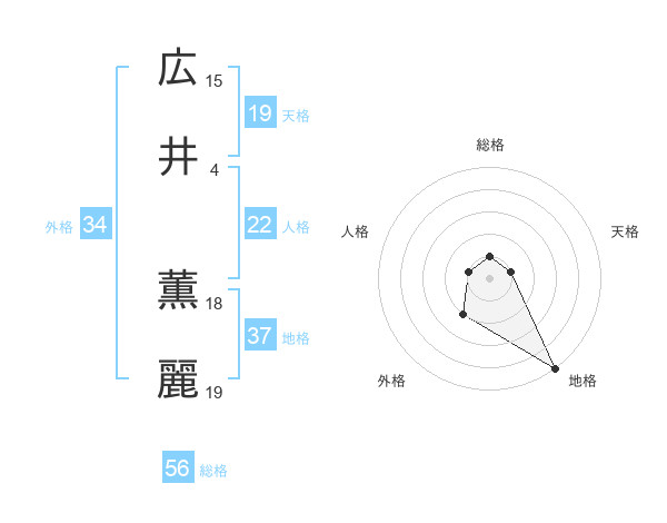 広井 薫麗さんを姓名の画数から五運を鑑定