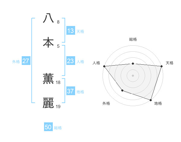 八本 薫麗さんの総格は50画の2点!