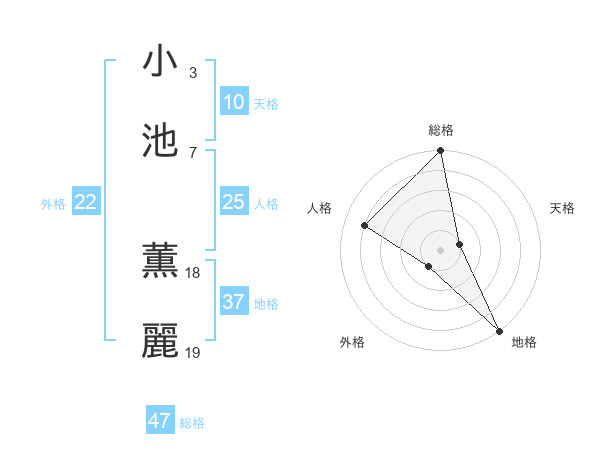 小池 薫麗さんを姓名の画数から五運を鑑定