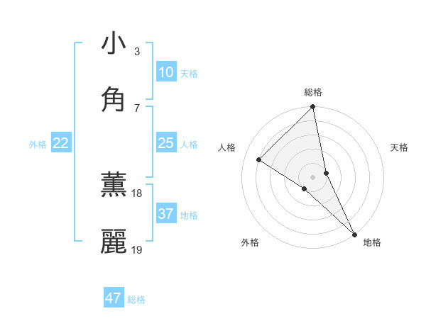 小角 薫麗さんを姓名の画数から五運を鑑定