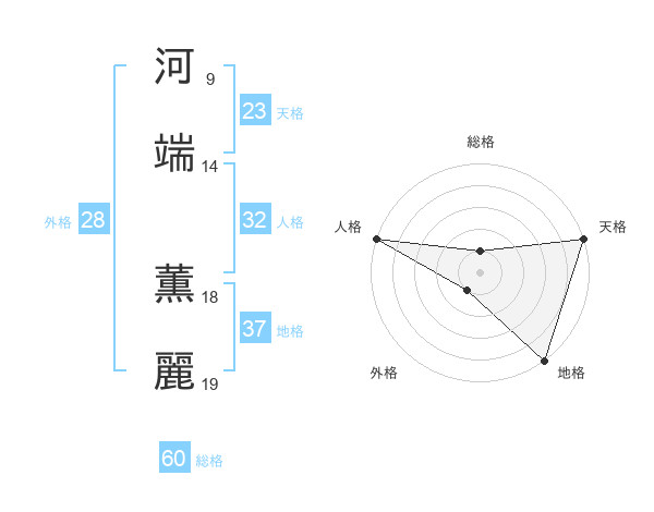 河端 薫麗さんの総格は60画の1点!