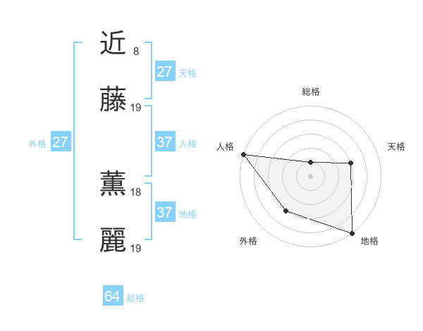 近藤 薫麗さんの人格は37画の5点!