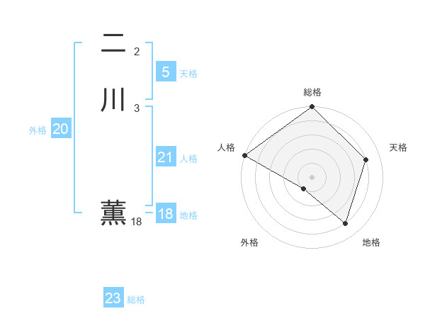 二川 薫さんの総格は23画の5点!
