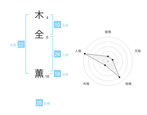 木全 薫さんの総格は28画の1点!
