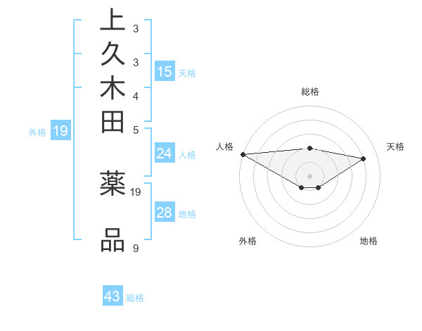 上久木田 薬品さんを姓名の画数から五運を鑑定