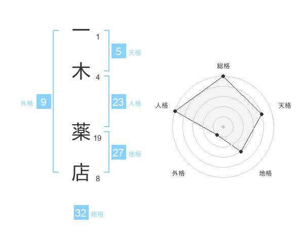 一木 薬店さんの総格は32画の5点!