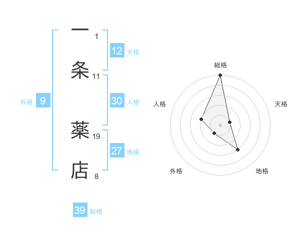 一条 薬店さんの総格は39画の5点!