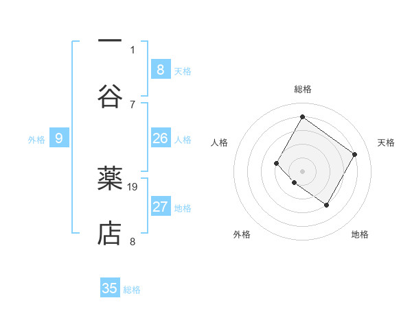 一谷 薬店さんの総格は35画の4点!