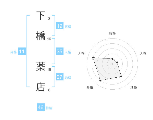 下橋 薬店さんを姓名の画数から五運を鑑定