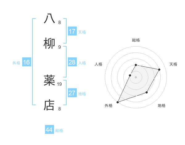 八柳 薬店さんを姓名の画数から五運を鑑定