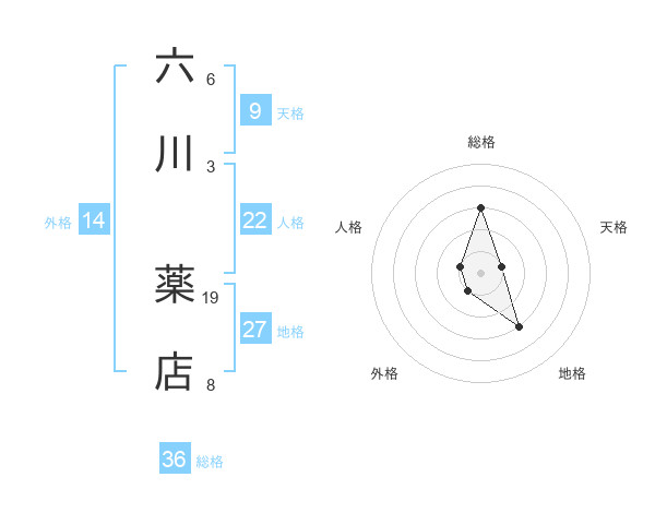 六川 薬店さんの総格は36画の3点!