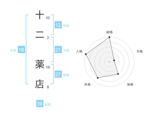 十二 薬店さんの総格は39画の5点!