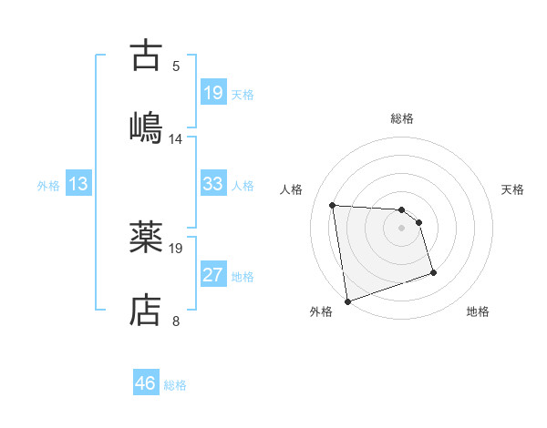 古嶋 薬店さんを姓名の画数から五運を鑑定