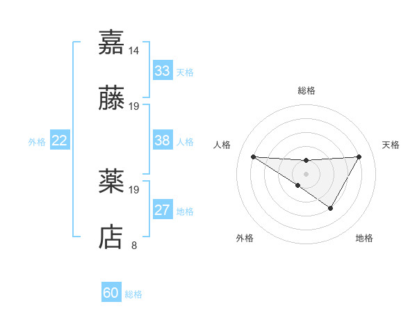嘉藤 薬店さんを姓名の画数から五運を鑑定