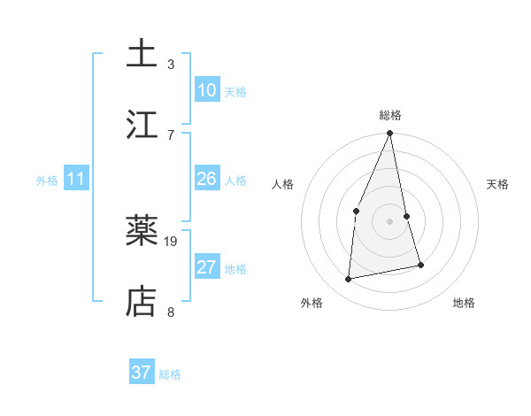 土江 薬店さんの総格は37画の5点!