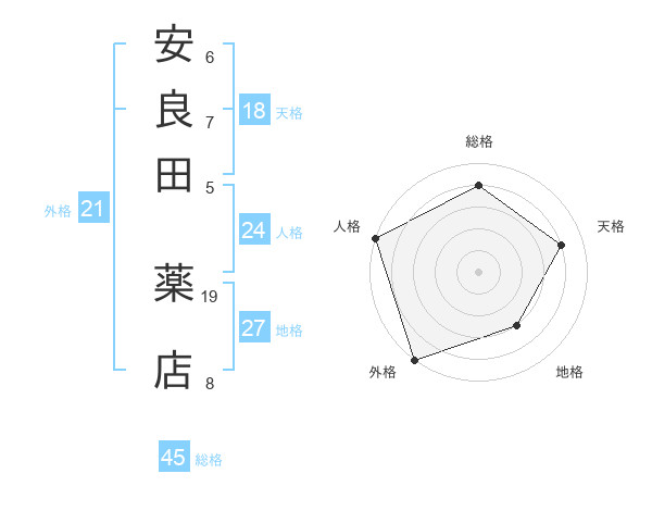 安良田 薬店さんを姓名の画数から五運を鑑定