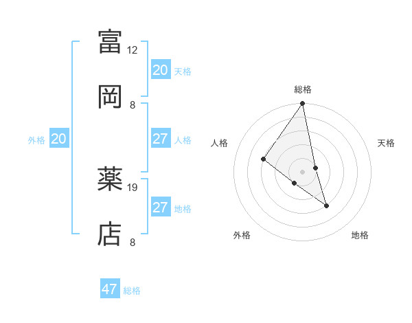 富岡 薬店さんを姓名の画数から五運を鑑定