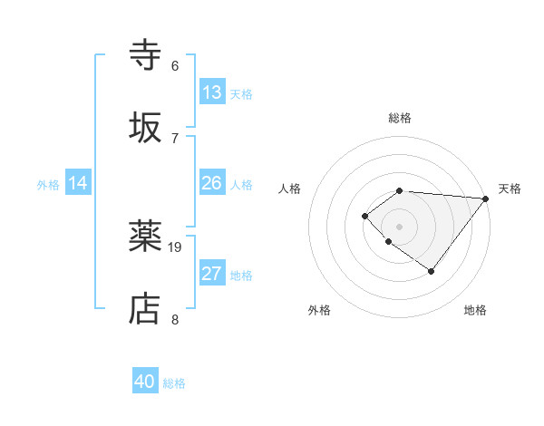 寺坂 薬店さんの天格は13画の5点!
