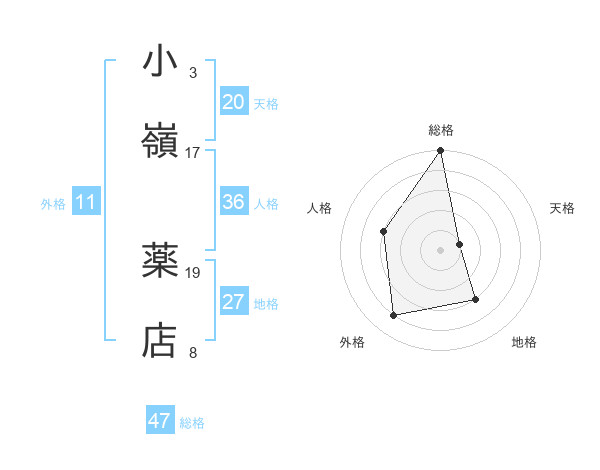 小嶺 薬店さんの総格は47画の5点!