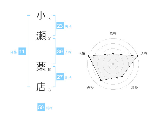 小瀬 薬店さんの天格は23画の5点!