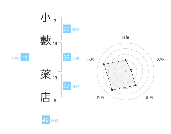 小藪 薬店さんを姓名の画数から五運を鑑定