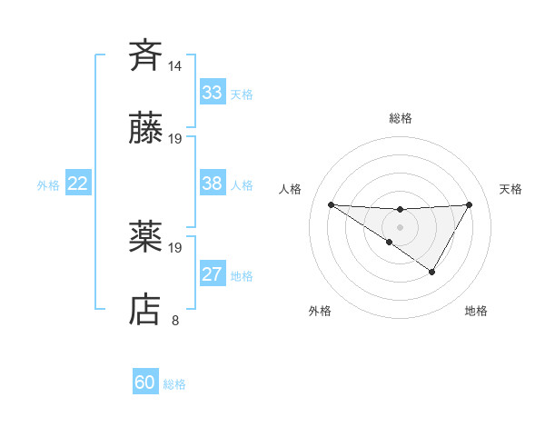 斉藤 薬店さんを姓名の画数から五運を鑑定