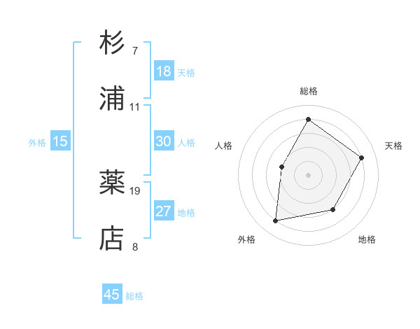 杉浦 薬店さんを姓名の画数から五運を鑑定