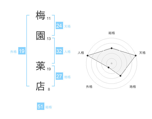 梅園 薬店さんの総格は51画の3点!