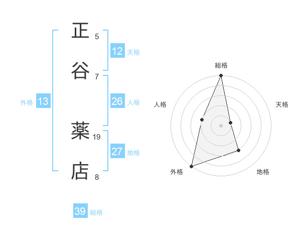 正谷 薬店さんの総格は39画の5点!