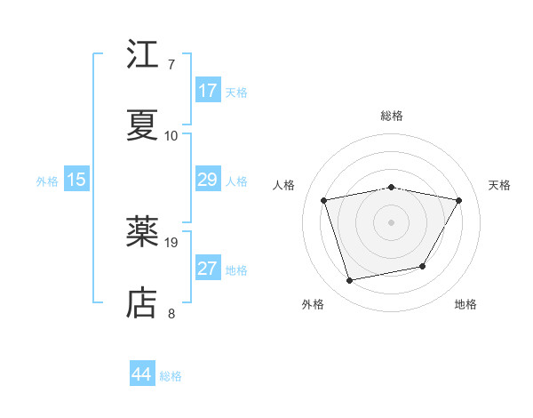 江夏 薬店さんの総格は44画の2点!