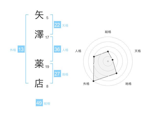 矢澤 薬店さんの地格は27画の3点!