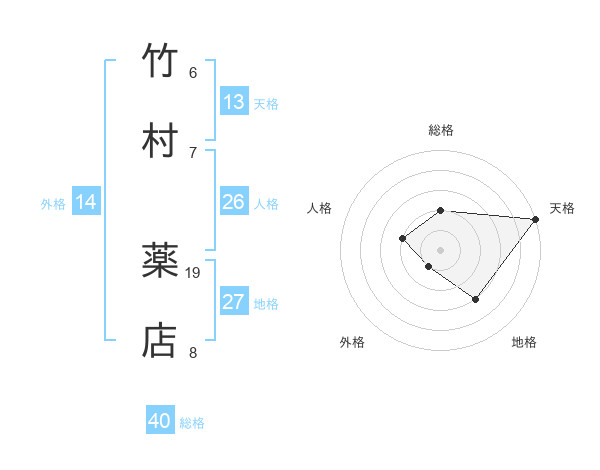 竹村 薬店さんの天格は13画の5点!