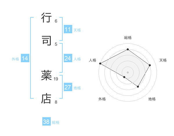 行司 薬店さんの総格は38画の4点!