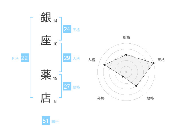 銀座 薬店さんの総格は51画の3点!