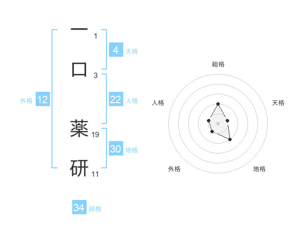 一口 薬研さんの総格は34画の2点!