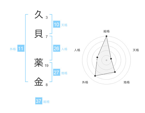 久貝 薬金さんを姓名の画数から五運を鑑定