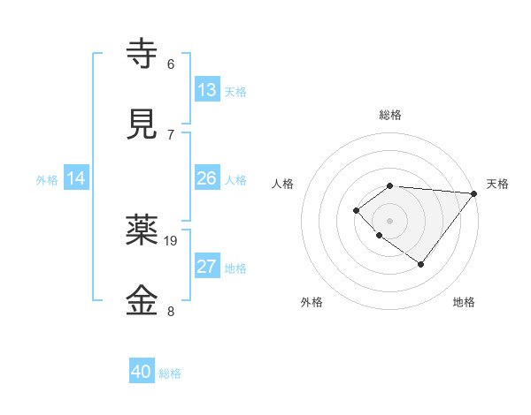 寺見 薬金さんの天格は13画の5点!